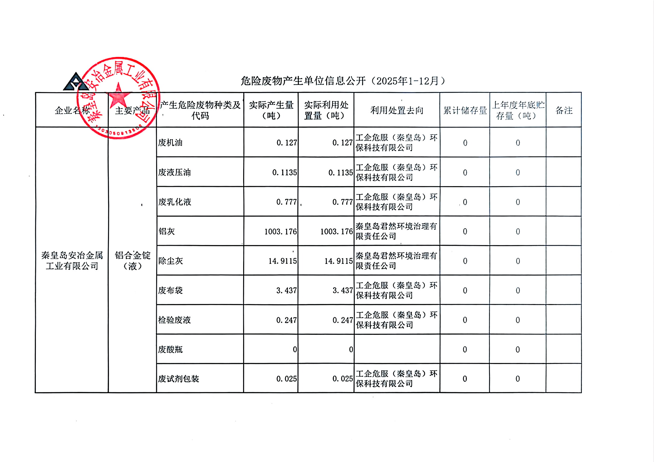 當前位置:首頁-資訊中心-危險廢物產(chǎn)生單位信息公開(202年1-12月)
